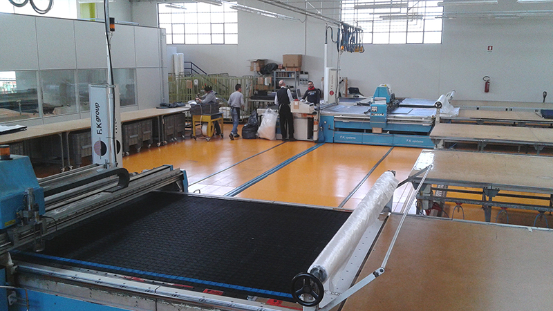 Modellistica – Reparto adesivatura – Reparto stesura e taglio tessuti – Magazzino materie prime